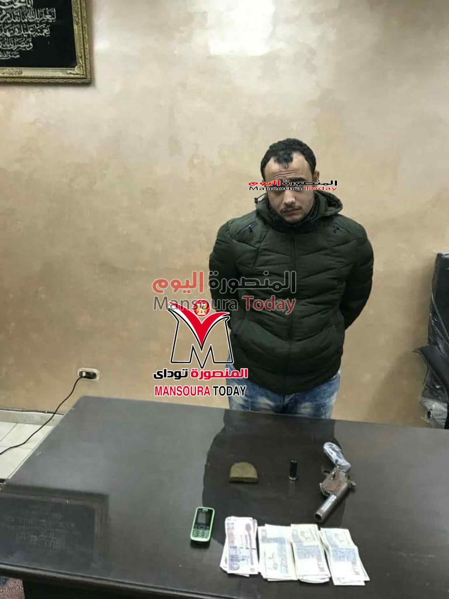 تم إعداد مأمورية ضبطية بقيادة الرائد محمد مطر رئيس مباحث قسم ثان المنصورة ،ومعاونة النقيب عمار الجداوي معاون مباحث القسم ، والنقيب رئيس وحدة تنفيذ الأحكام بالقسم ، وتم ضبط المتحري عنه وبحوزته نصف طربة حشيش ، وسلاح ناري عبارة عن فرد خرطوش محلى الصنع ، طلقة من ذات العيار، وهاتف محمول ، مبلغ مالي .