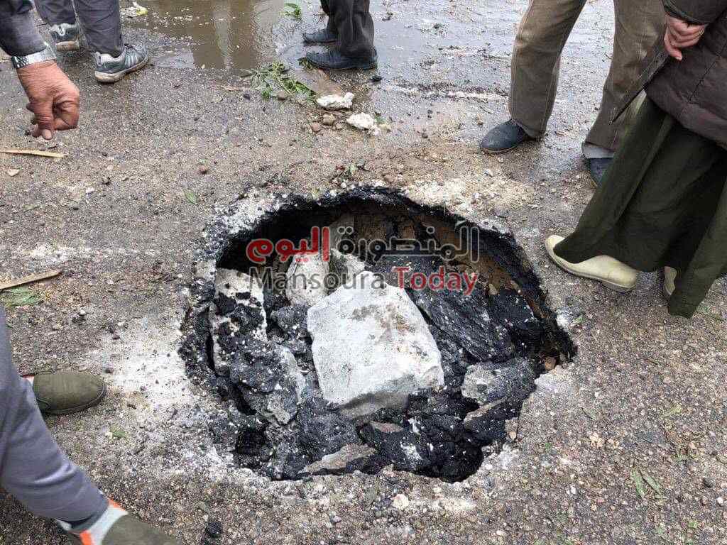 وانتقلت أجهزة مركز ومدينة المنصورة وادارة المرور ومسئولى شركتي الكهرباء والمياه وتم معالجه الهبوط هندسيا واعادة الحركة المرورية بالطريق والتى لم تتوقف نتيجة هذا الهبوط .