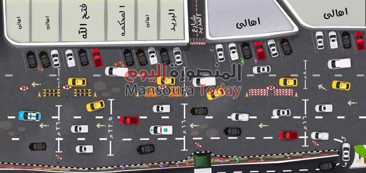 وتشمل الخطة المرورية الجديدة التي أشرف عليها الدكتور شريف البدوي الأستاذ بقسم الأشغال العامة بهندسة المنصورة على عمل انتظار عمودي على الطريق وبجوارها حارة بطيئة للتاكسي والميكروباص ثم حارة أخرى سريعة حرة تبدأ من منطقة فيلا غيث حتى بنك الإسكندرية وهة الامر الذي من شأنه تيسير الحركة المرورية للسيارات القادم من جامعة المنصورة.
