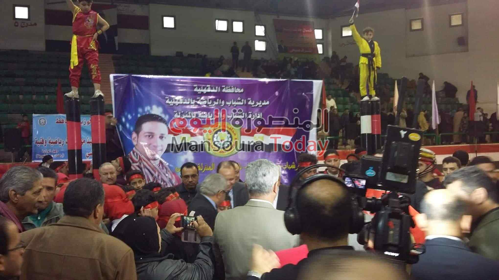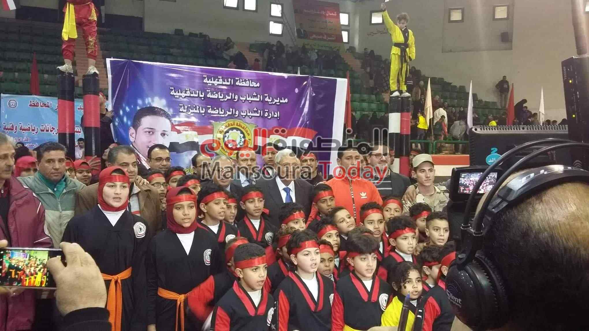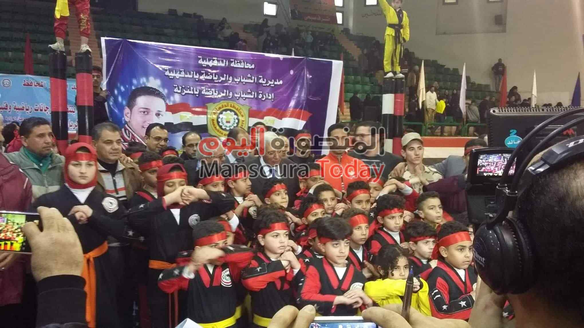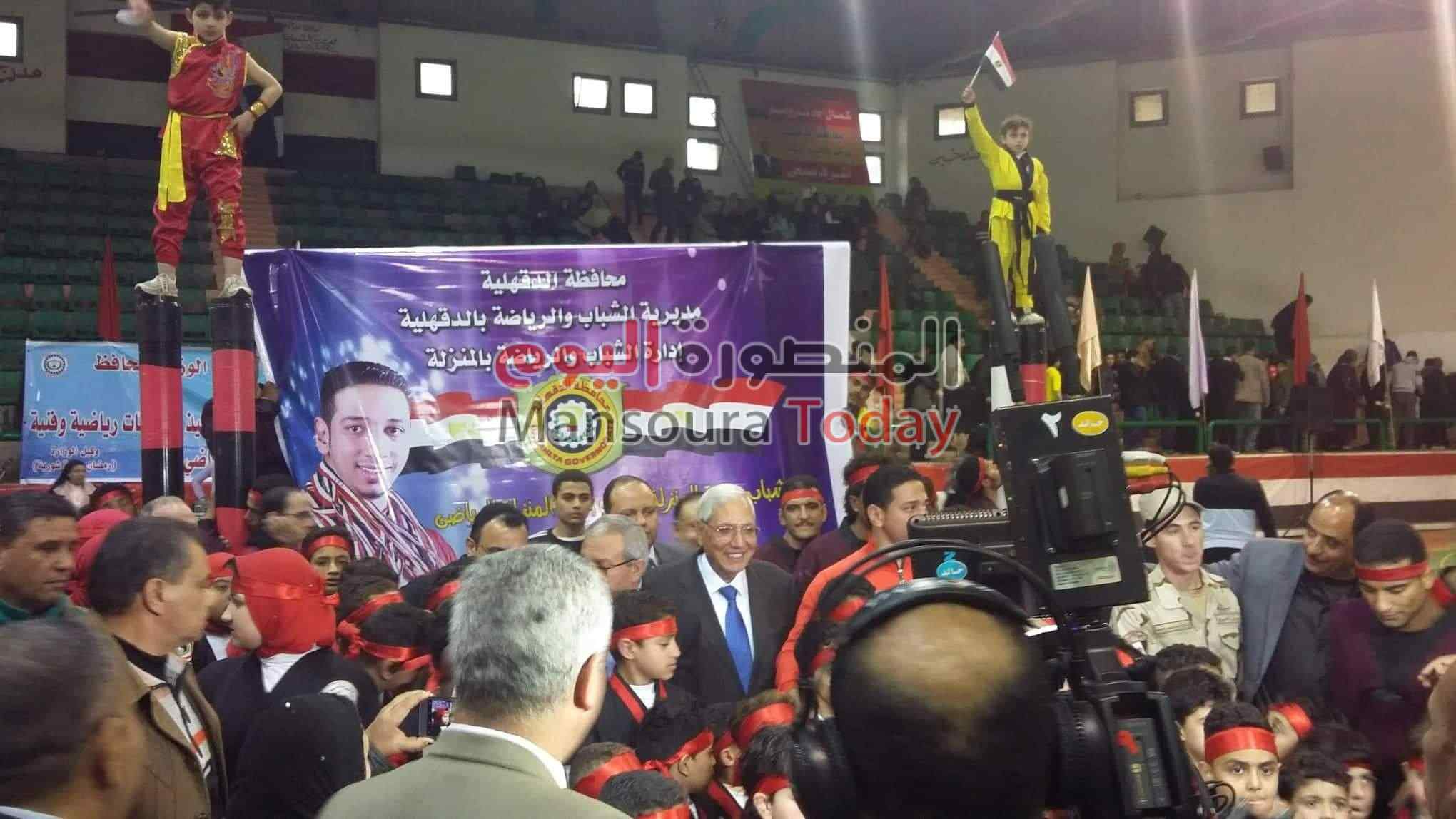 شهد الدكتور كمال شاروبيم محافظ الدقهلية احتفالات مديرية الشباب والرياضة بالصالة المغطاة باستاد المنصورة في إطار احتفالات الدقهلية بعيدها القومي .