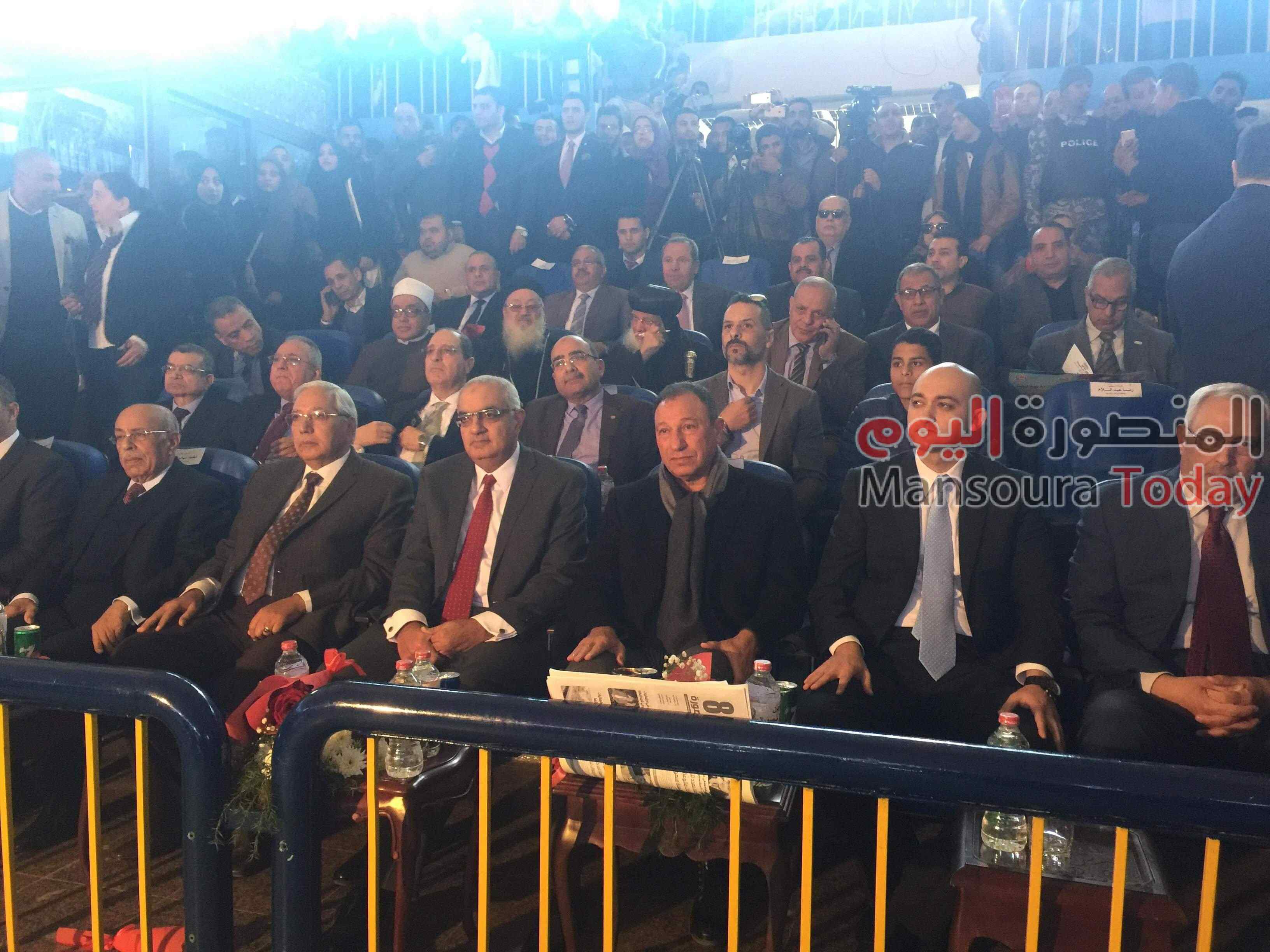 حضر الاستقبال الدكتور محمود المليجى نائب رئيس الجامعة لشئون خدمة المجتمع وتنمية البيئة، الدكتور أشرف سويلم نائب رئيس الجامعة للدراسات العليا، الدكتور أحمد جمال الدين وزير التربية والتعليم الأسبق، الدكتور محمد ربيع رئيس مجلس أمناء جامعة الدلتا، الدكتور إبراهيم صابر رئيس مجلس أمناء جمعة حورس، الدكتور رضا سيد أحمد عميد كلية الآداب ورئيس مهرجان ٨٠٠ سنة منصورة .