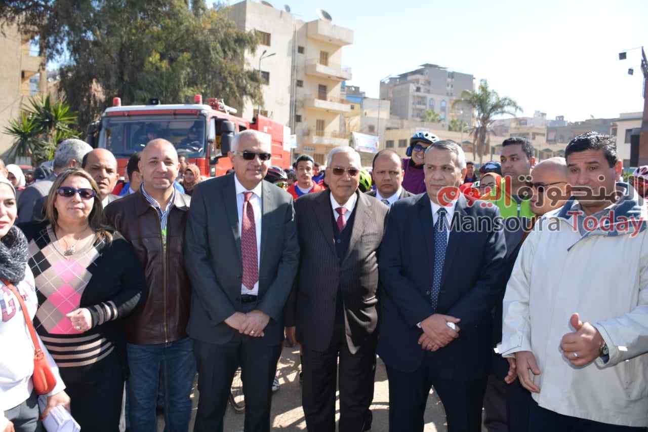 بالصور..محافظ الدقهلية ورئيس جامعة المنصورة يطلقان إشارة البدء لماراثون الدراجات