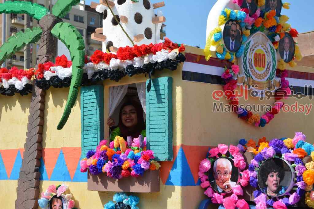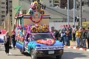 تلى ذلك عرض كليتى التربية والطب البيطرى وجمعية الهلال الأحمر وعربة زهور تابعة لأكاديمية الدلتا للعلوم.
