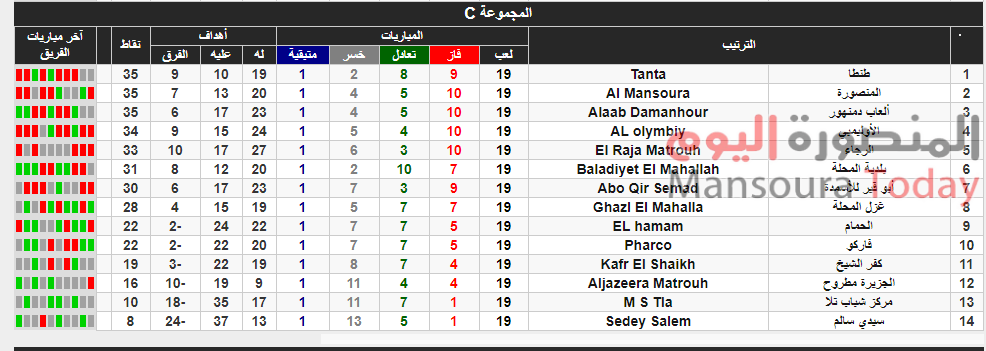 اقتسم المنصورة وطنطا قمة جدول ترتيب المجموعه الثالثه مجموعه بحري بالممتاز ب لكرة القدم عقب فوزهما اليوم الخميس علي المحله وتلا ليرتفع رصيد كلا منهما الي ٣٥نقطه وان تفوق طنطا بفارق الأهداف.