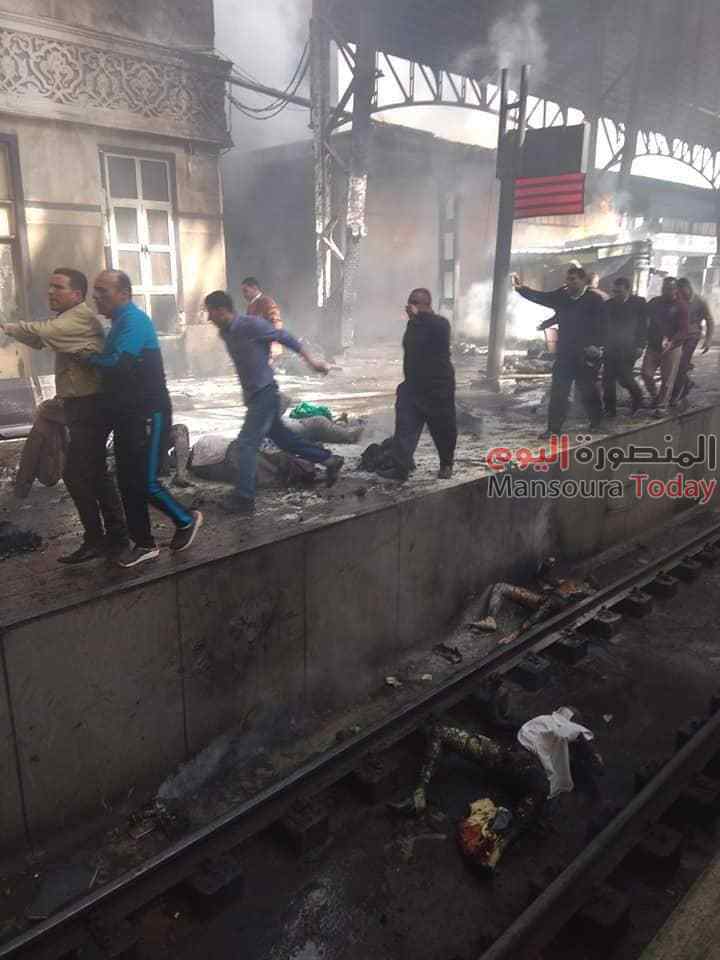 ونشب حريق هائل جراء اصطدام القطار بـ “صدادة حديدية” في محطة رمسيس، وهي المحطة المركزية للقطارات بالقاهرة، لينفجر خزان الوقود في القاطرة الرئيسية.