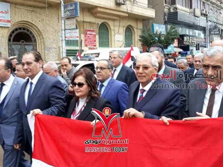 و نظمت مديرية الصحة بالدقهلية مسيرة قادها المحافظ و شارك فيها الدكتورة منى محرز نائب وزير الزراعه والدكتور سعد مكى وكيل وزارة الصحه بالمحافظه وعدد من اعضاء مجلس النواب والقيادات الشعبيه والتنفيذيه بالمحافظه من امام ديوان عام المحافظه وحتى مسجد النصر بالمنصورة.