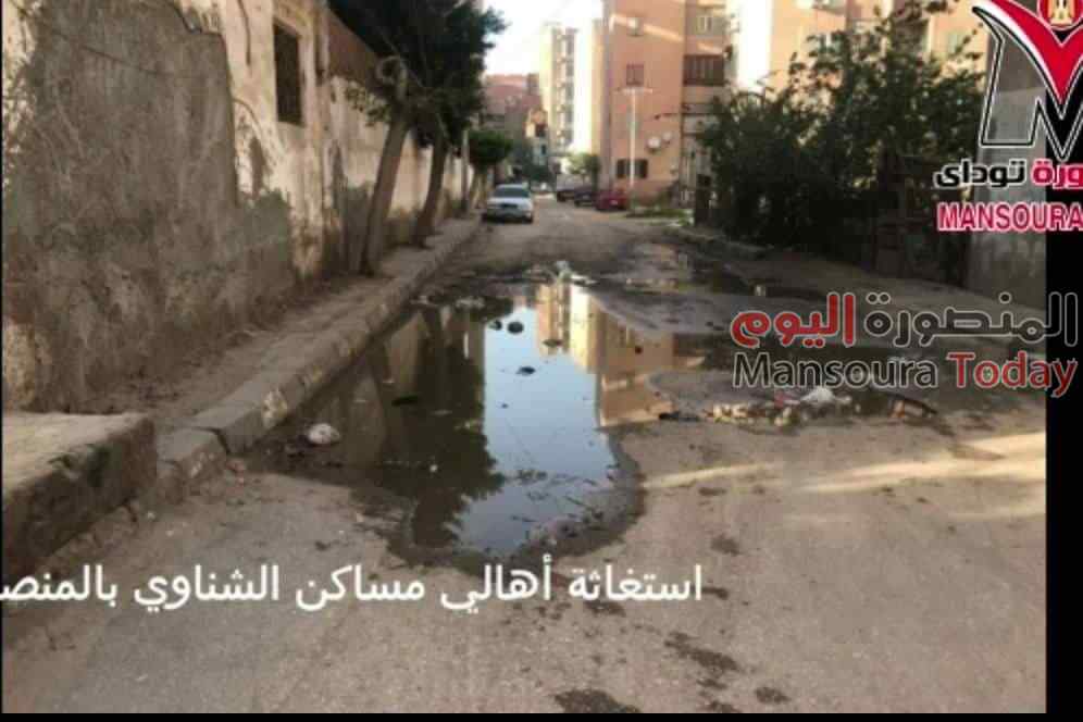 انتقلت عدسة ” المنصورة توداي” إلى المنطقة وسجلت بعض مقاطع “الفيديو والصور” التي تبين انتشار مياه الصرف الصحي في الشوارع، ووجود عدد من “السرنجات ” الملقاة في الشارع والتي تبين تردد “المدمنين” علي المنطقة في المساء، ووجه أهالي مساكن الشناوي استغاثة إلي محافظ الدقهلية الدكتور كمال شاروبيم ، ومسئولي حي شرق المنصورة ، واللواء محمد حجي مدير أمن الدقهلية ، وذلك من أجل معالجة مياه الصرف وكذلك إنارة الشوارع الجانبية والحدائق بين العمارات والتي يتردد عليها المدمنين ،وتخصيص عدد من الدوريات الأمنية بالمنطقة خاصة مع وجود العديد من المنشئات الحيوية والحكومية الهامة بنفس المنطقة .