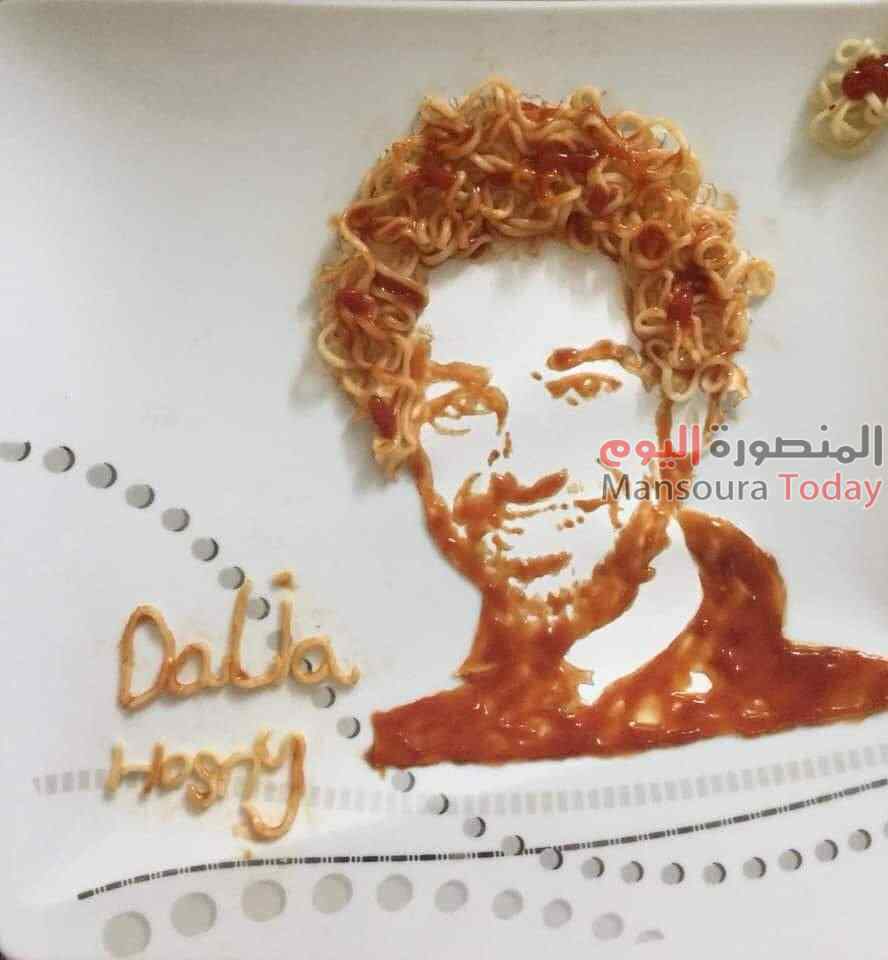وعن الرسم بالأكل أضافت داليا :” بحب الرسم بالأكل لأنه بيخليني أشوف أن الفن في العقل وليس ورقة وألوان فهو يجسد الواقع ، واستخدمت العديد من المواد مثل الملح ، والشيكولاتة والقهوة والمكرونة و البطاطس والكاتشب ، واللوحة بالأكل لاتتعدي نصف ساعة ، ورسمت لوحة فنية لمحمد صلاح بالمكرونة في نصف ساعة ، ووقتها أهلي سألوني بتعملي أيه في المطبخ يا داليا “بعمل محمد صلاح الله علي طعمك يافخر العرب “، لكن اللوحات الكبيرة تزيد في رسمها عن أسبوع ، والبورتريهات لا تتعدي الساعتين ” .