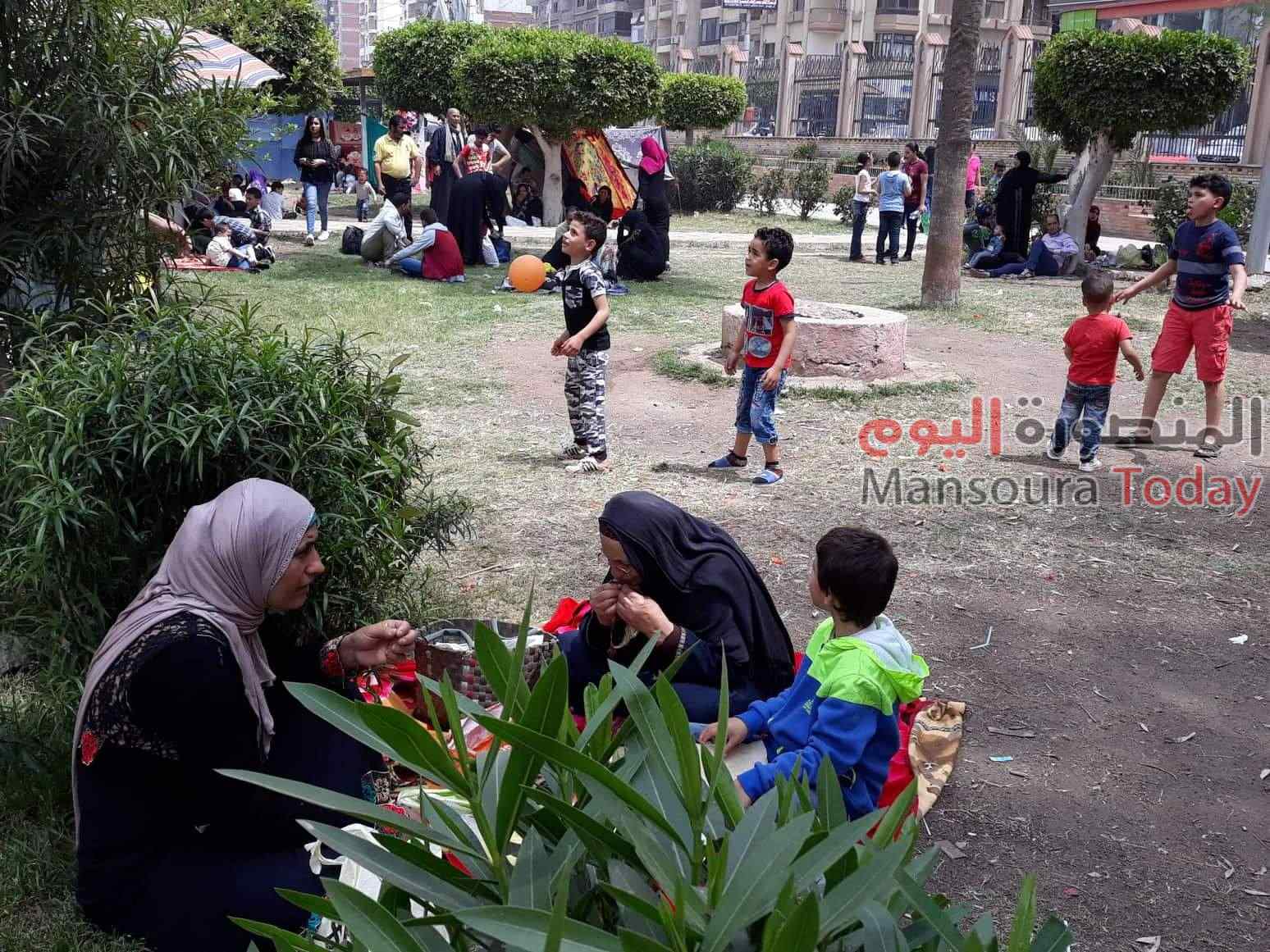 تواجد العديد من العائلات داخل الحديقة وإستمتاعهم بالجو العائلى و أكل الفسيخ والرنجة والبصل وقيام الأطفال باللعب بالكرة والغميضة والقيام بالمسابقات ، وتواجد أيضا بائعين الترمس والتوت والحرنكش.