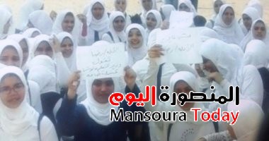 طالبات يتظاهرن في فناء مدرسة ميت علي التجارية بالمنصورة