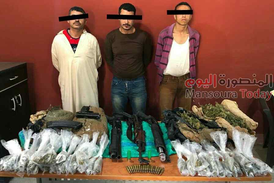 حيث قامت أجهزة وزارة الداخلية عقب تبادل لإطلاق النيران من ضبط 4 من العناصر الإجرامية الخطرة من المتاجرين فى المواد المخدرة وحائزى الأسلحة النارية بدون ترخيص ، وذلك حال اختبائهم بالزراعات بمركز ميت غمر بالدقهلية. وأكدت معلومات وتحريات وحدة مباحث مركز شرطة ميت غمر بمديرية أمن الدقهلية قيام 3 من العناصر الإجرامية الخطرة بالإتجار فى المواد المخدرة ، وترويجها على عملائهم بدائرة المركز (سبق إتهام أحدهم فى عدد 15 قضية متنوعة “مخدرات ، بلطجة ، سرقة متنوعة ، سرقة وسائل نقل ، سلاح أبيض” ، ومطلوب ضبطه لاتهامه فى واقعة إطلاق عيارى نارى تجاه مزارع وإصابته لوجود خلافات بينهما، كما سبق إتهام الاثنين الآخرين فى عدد 23 قضية متنوعة “مخدرات ، بلطجة ، سرقة متنوعة ، سرقة مسكن ، سلاح أبيض ، آداب عامة”).وهم يحى ا م السيد م ع محمد ف ى عقب تقنين الإجراءات تم استهدافهم بحملة أمنية مكبرة بمكان اختبائهم بالزراعات في قرية القيطون بدائرة المركز ، وحال شعورهم بالقوات قامت العناصر الإجرامية بإطلاق أعيرة نارية تجاهها، والتى قامت بدورها بمبادلتهم وأسفر ذلك عن ضبطهم وبحوزتهم “بندقية آلية- 2 بندقية خرطوش- طبنجة و21 طلقة مختلفة الأعيرة- كمية من نبات البانجو المخدر وزنت قرابة20 كيلو جرام “كما تبين إصابة أحد العناصر الإجرامية “يدعي سامى ع ا 00سبق اتهامه فى إحدى القضايا” كان برفقتهم بطلق نارى بالصدر ، وتم نقله للمستشفى لتلقى العلاج، إلا أنه توفى لدى وصوله للمستشفى متأثراً بإصابته. تحرر عن ذلك المحضر اللازم لاتخاذ الإجراءات القانونية.