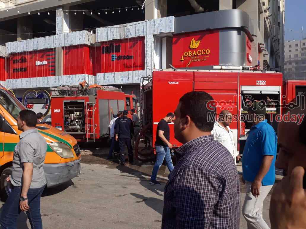 أصيب ١٣ شخص باختناق في حريق هائل بمول المحلة بالداون تاون بمدينة المنصورة.