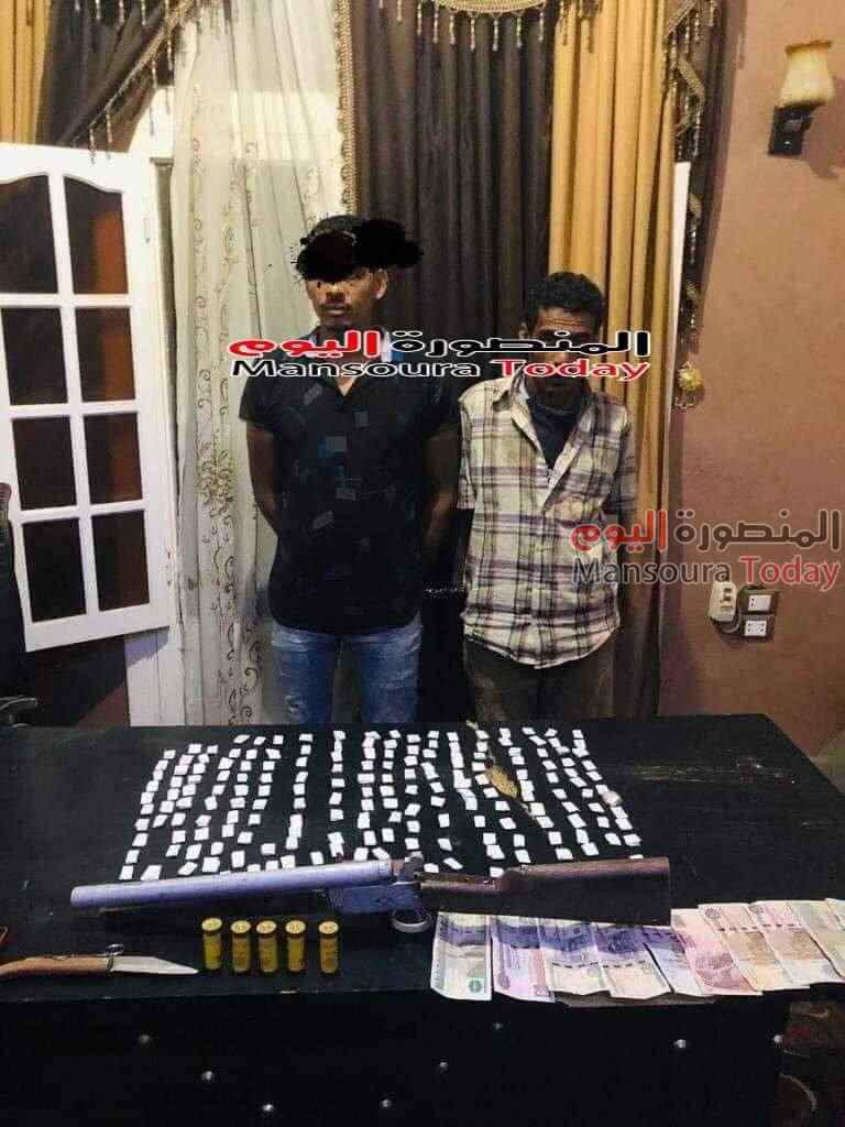 تمكن ضباط مباحث مركز شرطة شربين من ضبط ميكانيكى وعامل وبحوزتهم ١٨٧ تذكرة هيروين وسلاح نارى.