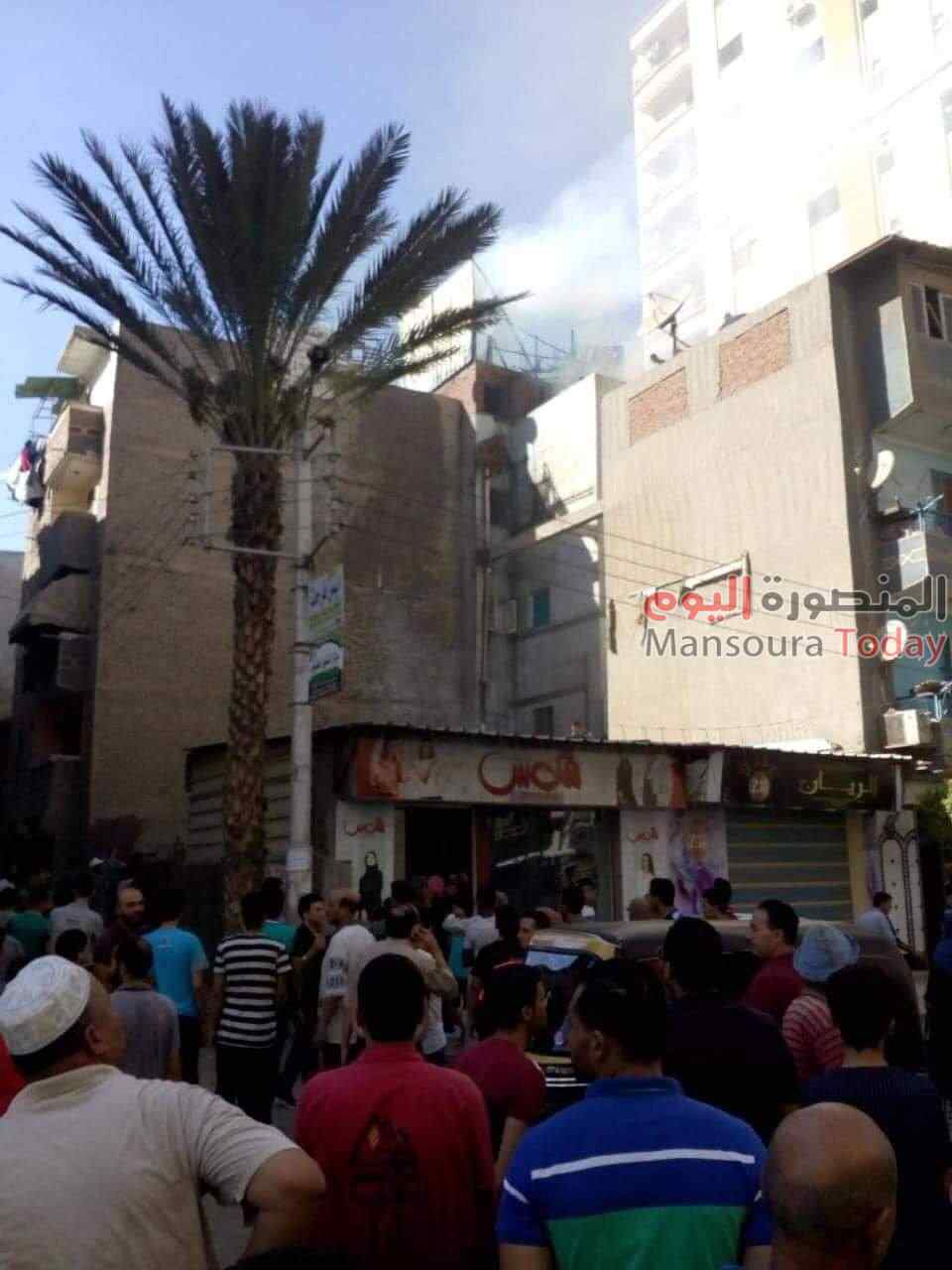 انتقل على الفور ضباط المباحث وقوات الدفاع المدني وسيارات الإطفاء بقيادة المقدم احمد عوض قائد إطفاء الدقهلية، وسيارات الإسعاف لمكان البلاغ وبالفحص تبين أن الحريق شب بمنزل 5 شارع الحداد من شارع الدراسات ملك المواطن أسامة محمد زايد والعقار مكون من محل نجارة ودور أرضي ودورين علوي والحريق شب بمخلفات أخشاب أعلي سطح العقار بسبب شوي سمك بفرن غاز أعلي سطح العقار وامتدت النيران الي سطح المنزل المجاور لوجود برج حمام والذي اشتعلت به النيران ليطير الحمام الي المنازل المجاورة مشتعلاً فيسبب انتقال النيران الي المنازل المجاورة وذلك لانتشار أبراج الحمام بالمنطقة
