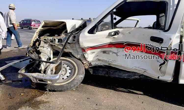 لقي شخص مصرعة واصيب 6 آخرين في حادث تصادم سيارة ملاكي مع سيارة ربع نقل علي طريق شربين دمياط بمحافظة الدقهلية تلقي اللواء فاضل فهمي ، مساعد وزير الداخلية لأمن الدقهلية ، اخطارا من شرطة النجدة يفيد لوقوع حادث تصادم بين سيارة ملاكي واخري ربع نقل علي طريق شربين دمياط ومصرع شخص وأصابة اخرين انتقل علي الفور ضباط مباحث المركز وسيارات الإسعاف الي مكان البلاغ وبالفحص تبين تصادم سيارة ملاكي تحمل لوحات معدنية رقم 1698 د.ع.ف ، مع سيارة ربع نقل تحمل لوحات معدنية رقم 2963 د.ل.ك علي طريق شربين دمياط أمام قرية السعدية، واسفر الحادث عن وفاة قائد السيارة الملاكي ويدعي سمير شعبان علي 60 سنة ،ومقيم بعزبة صبحي مركز بلقاس، وتم دخول الجثة مشرحة مستشفي شربين ، وتبين اصابة كل من اميرة السيد جاد 23 سنة ومقيمة عزبة صبحي مركز بلقاس وتم تحويلها للمستشفي الدولي بالمنصورة ، وهبة السيد جاد 17 سنة ،وسما ابراهيم السيد 4 سنوات، وابراهيم السبد شعبان 27 سنة، والسيد جاد الحق ابراهيم 35 سنة ،وناصر شعبان علي 40 سنة ،ومقيمون جميعا بعزبة صبحي مركز بلقاس وتم دخولهم مستشفي شربين العام تحرر عن ذلك المحضر الازم لاتخاذ الاجراءات القانونية
