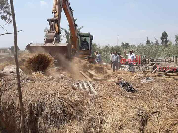 قامت رئاسه مركز ومدينه منيه النصر بالتنسيق مع جهات الري والصرف الصحي لإزاله جميع المخالفات التي تتعدي علي املاك الدوله