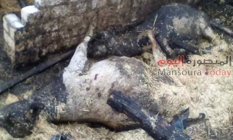 نفوق 13 رأس ماشية في حريق مزرعة مواشي بإحدي قري شربين