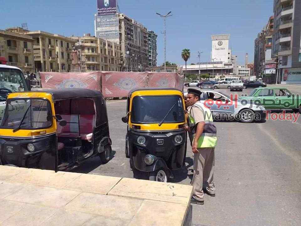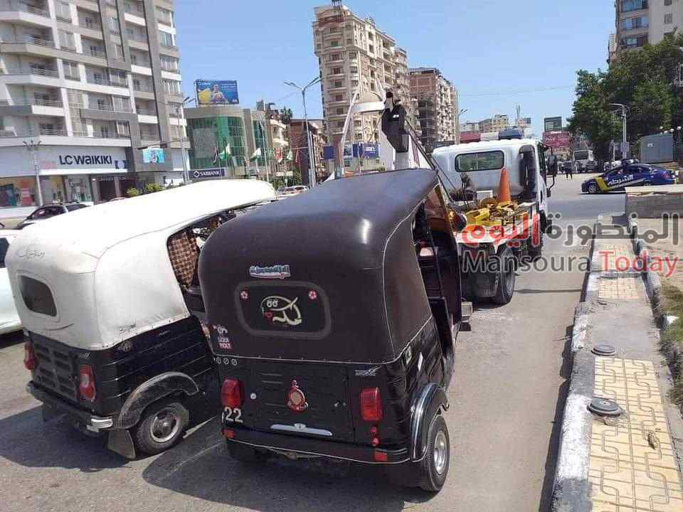 شنت ادارة مرور الدقهلية بقيادة العميد ممدوح الحصى مدير الادارة حملة مروريه بالتنسيق مع حى شرق المنصورة لضبط التكاتك المخالفه بشارع قناة السويس .