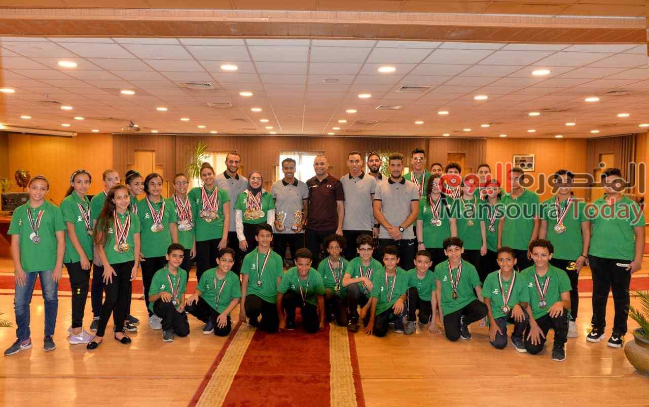 استقبل الدكتور أشرف عبد الباسط رئيس جامعة المنصورة فريق سباحي الزعانف بالقرية لمشاركتهم الفعالة والمتميزة وما حققوه من تفوق رياضي وحصولهم على عدد كبير من الميداليات في بطولة بورسعيد الصيفية للسباحة بالزعانف بعدد ٣١ سباح وحصولهم على ٦٠ ميدالية متنوعة (١١ ذهب -٢٤ فضة -٢٥ برونز) بحضور الكابتن هيثم البدويهى مدير القرية الأولمبية ، الكابتن عزت طلعت مدير حمام السباحة ، الكابتن محمود وجدى المدير الفنى للسباحة ، ومدربى فرق الزعانف وقدم رئيس الجامعة التهنئة للاعبين بعد حصولهم علي الميداليات وهم الاء مجدى صابر والتي حققت 7 ميداليات ٦ ذهبية و ١ فضة