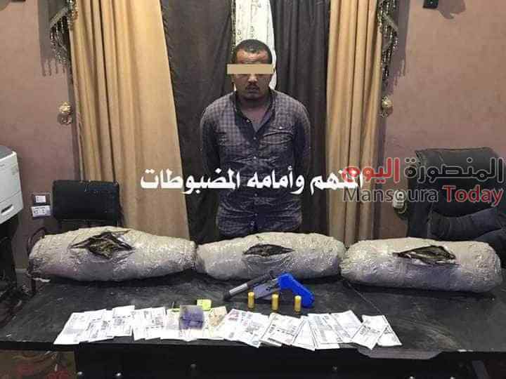 تمكن ضباط مباحث مركز شربين من ضبط عاطل وبحوزته كمية كبيرة من نبات البانجو المخدر وسلاح نارى.