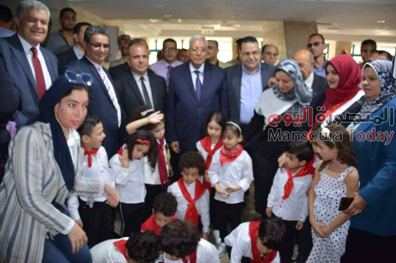 وتابع محافظ الدقهلية عددا من العروض الفنية الغنائية والموسيقية والشعرية من أداء أطفال وأبناء مدرسة المنصورة كولدج وإدارة غرب المنصورة التعليمية وكورال أطفال إدارة المطرية التعليمية .