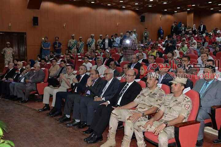 بحضور كل من الدكتور أشرف عبد الباسط رئيس الجامعة ، الدكتور محمود المليجى نائب رئيس الجامعة لشئون خدمة المجتمع وتنمية البيئة ، الدكتور محمد عطية البيومى نائب رئيس الجامعة لشئون التعليم والطلاب ، الدكتور أشرف طارق حافظ نائب رئيس الجامعة للدراسات العليا والبحوث ، اللواء هيثم الوشاحى مساعد وزير الداخلية لقطاع شمال الدلتا ، الاستاذ اسامة موسى أمين عام الجامعة ، العقيد أركان حرب / تامر العوضى المستشار العسكرى لمحافظ الدقهلية ، المقدم / أحمد محمد شحاته مدير إدارة التربية العسكرية بجامعة المنصورة ، السادة عمداء كليات الجامعة ووكلائها والسادة الأمناء المساعدين ، ولفيف من السادة أعضاء هيئة التدريس ومعاونيهم والعاملين والطلاب بالجامعة.