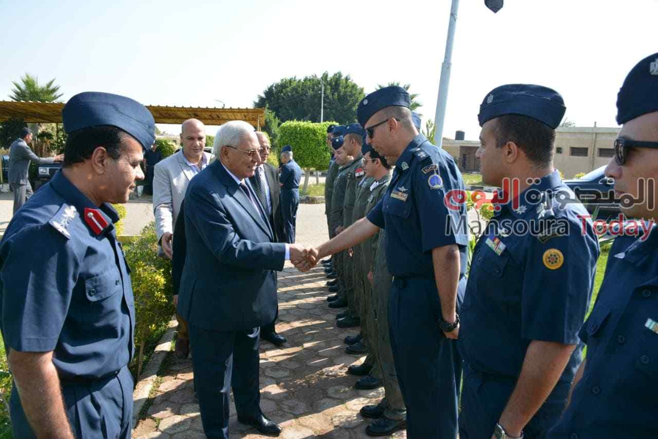 وصافح محافظ الدقهلية طابور الاستقبال مهنئا بيوم النصر في المعركة الجوية في المنصورة والتي دارت في سمائها 14 أكتوبر عام 1973 لتشهد المنصورة أطول معركة جوية في التاريخ بعد الحرب العالمية الثانية .