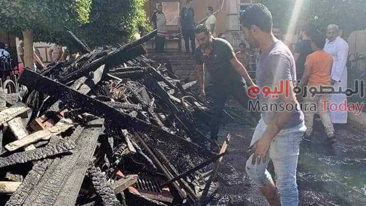 وجاء نص البيان:” نخبركم أن ما حدث بكنيسة مارمينا و البابا كيرلس الملحقة بكنيسة الشهيد العظيم مار جرجس بالمنصورة هو حريق أتى على الكنيسة بأكملها، حيث أنها من الخشب وإلى الآن لا نعلم سبب الحريق ، و لكننا على ثقة أن الله سيسمح ببناءها مرة أخرى بنعمة ربنا .