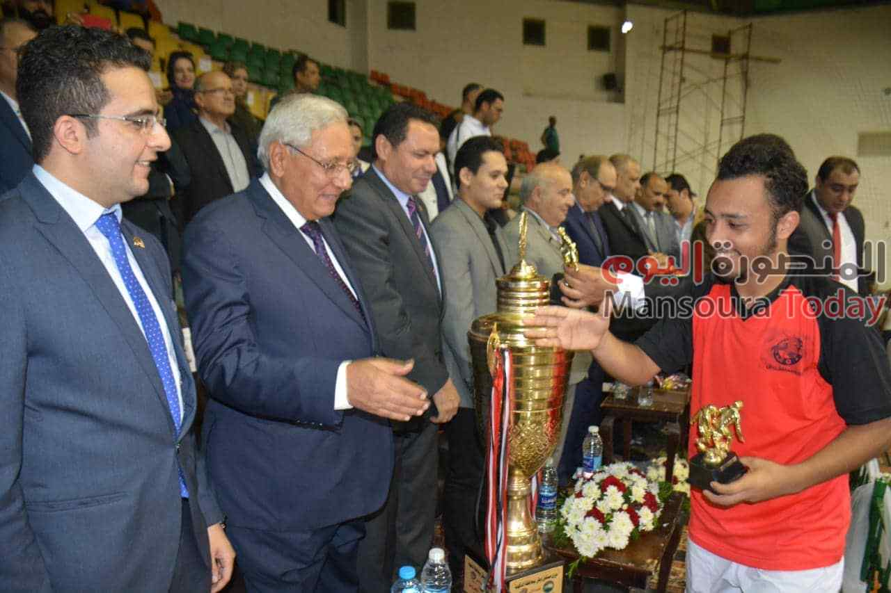 شهد الدكتور كمال شاروبيم محافظ الدقهلية حفل ختام نهائي دوري مستقبل وطن الموسم الثاني، علي مستوي محافظة الدقهلية ، لكرة القدم الخماسية والذى نظمه الحزب بالدقهلية بالصالة المغطاة بإستاد المنصورة الرياضي.
