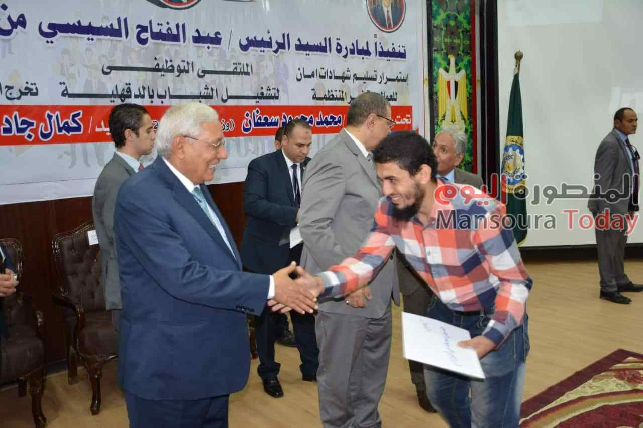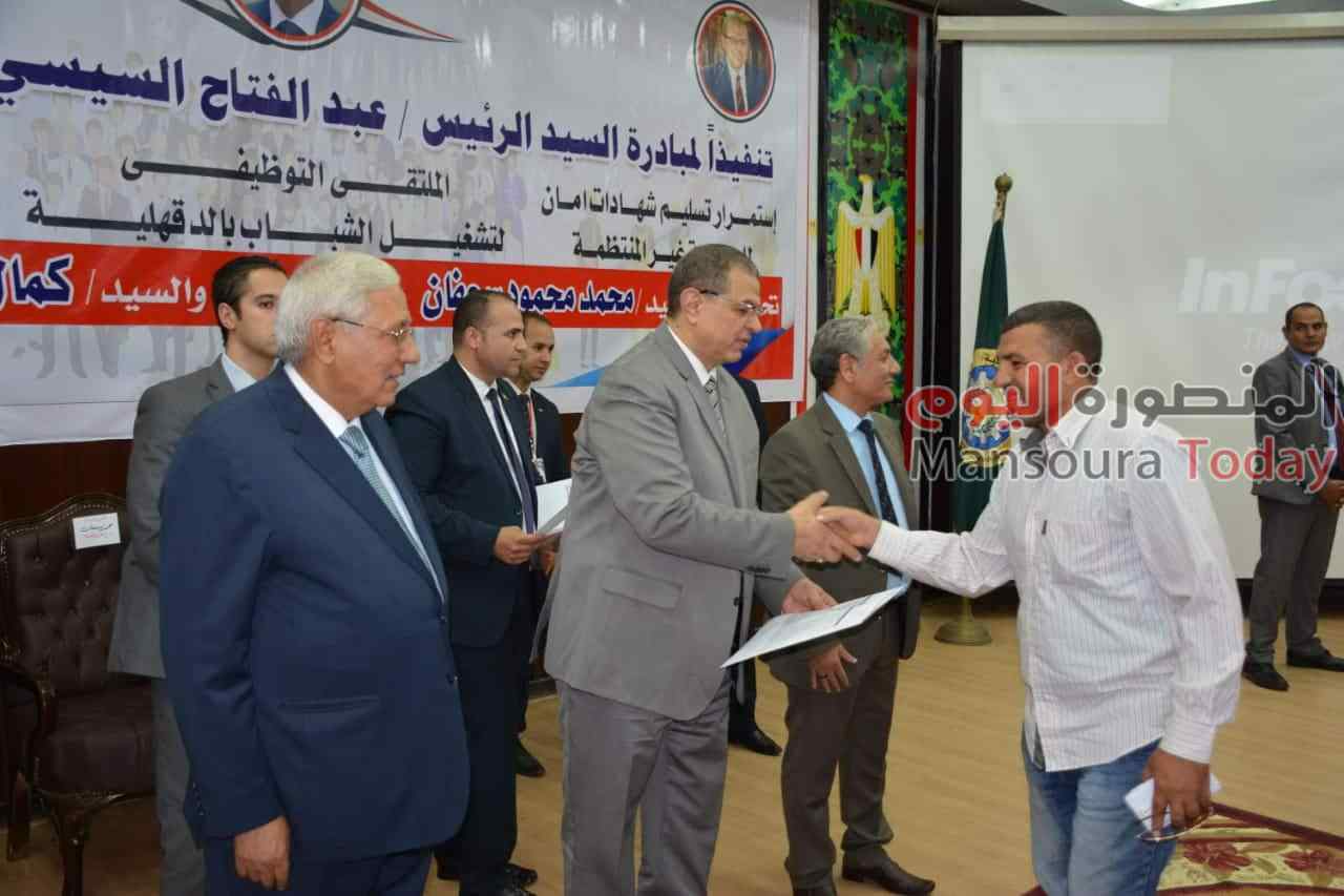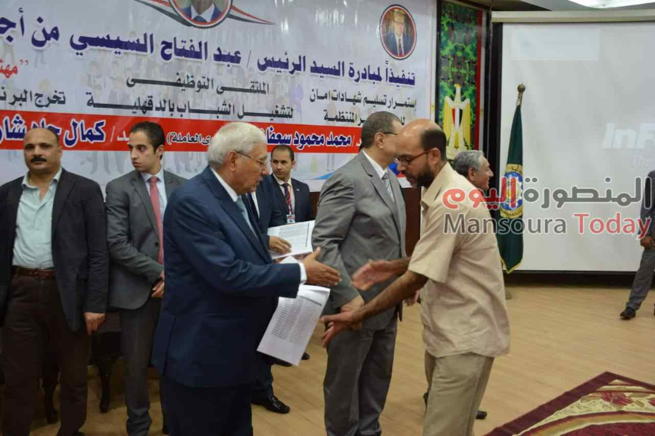 وفي ختام الحفل سلم محافظ الدقهلية ووزير القوى العاملة 12 شهادة لخريجي دورة الوحدة المتنقلة على أعمال السباكة الصحية، كما سلما 200 شهادة أمان .