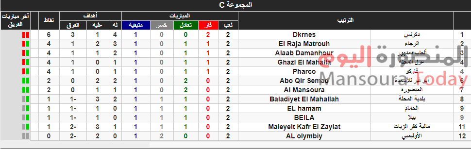 يتربع بذلك فريق دكرنس الحصان الاسود حتي الان في الدرجة الثانية بصدارة المجموعة الثانية برصيد 6 نقاط بتحقيق العلامة الكاملة بالفوز في مباراتين ، وبفارق نقطتين فقط عن الرباعي غزل.المحلة والرجاء ودمنهور فاركو.