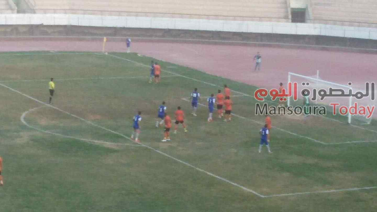 سيطر المنصورة على معظم فترات الشوط الاول ونجح احمد هريسه في إحراز هدف التقدم عند الدقيقه 25، قبل أن يضيف محمد نجاتي الهدف الثاني من ركلة جزاء في الدقيقه 41 .