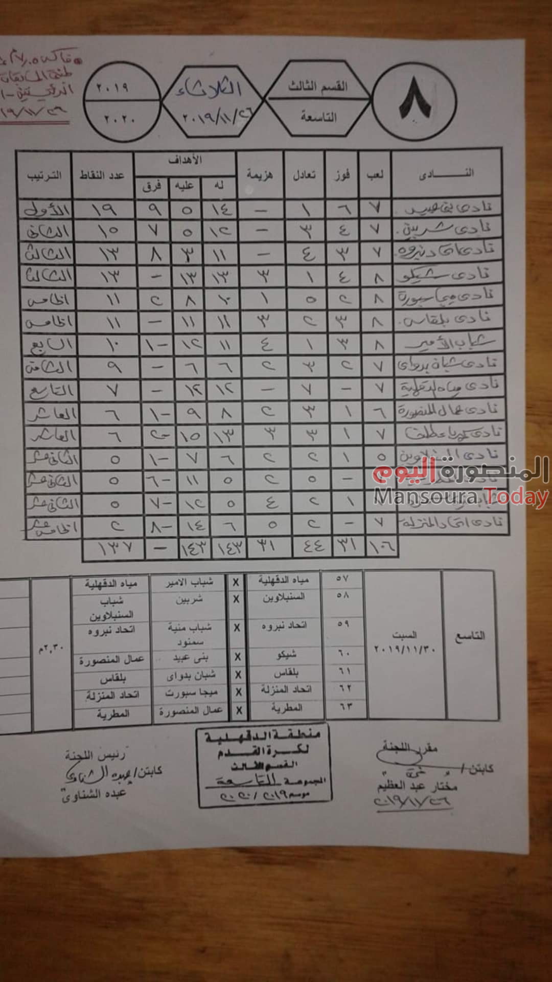 اما بقية لقاءات الاسبوع فهي كالتالي : السنبلاوين مع شربين و مياه الدقهلية مع الامير واتحاد نبروة مع شباب منية سمنود واتحاد المنزلة مع ميجاسبورت والمطرية مع عمال المنصورة علي ملاعب الاندية المذكورة اولا ولن يلعب كهرباء طلخا .