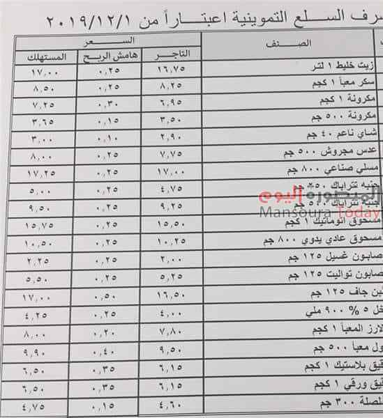 يذكر أن الدكتور على المصيلحي، وزير التموين كان قد قرر تخفيض أسعار 4 سلع تموينية أساسية أول ديسمبر المقبل، حيث سيكون سعر كيلو السكر بالبطاقات التموينية بـ8.5 جنيه، بدلاً من 9.5، وسعر عبوة زيت طعام واحد لتر خليطا (صويا وعباد) ليصبح 17 بدلاً من 19 جنيها، وسعر كيلو الأرز 8 بدلاً من 9 جنيهات، وسعر كيلو الدقيق المعبأ بلاستيك 6.5 جنيه بدلاً من 6.75 جنيه؛ وذلك في إطار السعي لتوفير السلع الغذائية على البطاقات النموينية أسعار وكميات مناسبة.