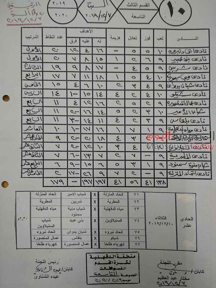 تقام عصر اليوم 7 مواجهات ساخنة في الجولة الحادية عشر من المجموعة التاسعة دقهلية بالقسم الثالث .