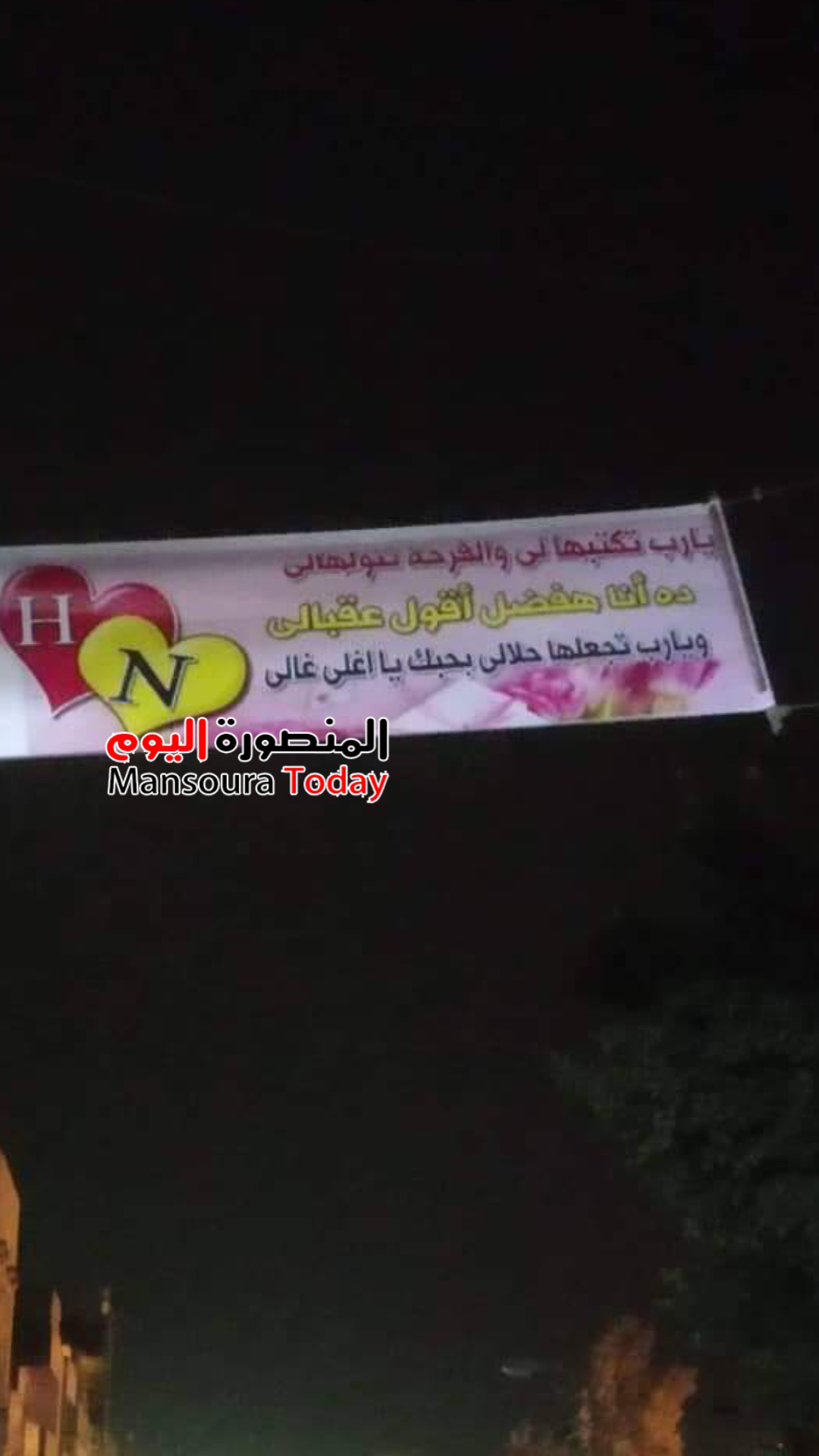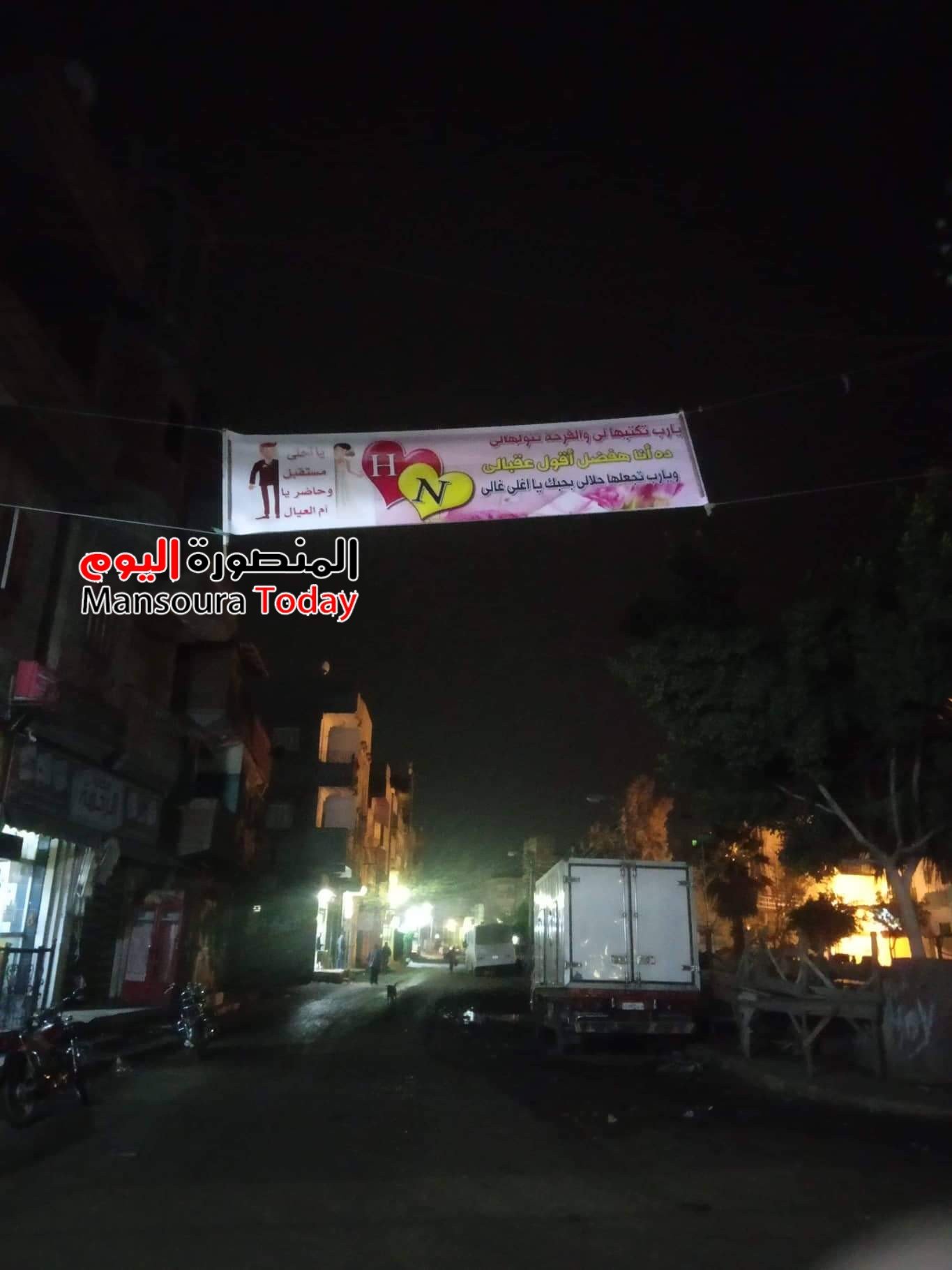 لافتة غرامية بعنوان “بحبك ياأغلي غالي” في شوارع البصراط بالمنزلة