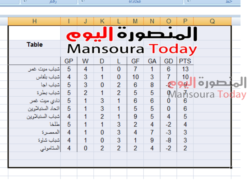 يحتل شباب ميت غمر الصدارة برصيد 13 نقطة من خمس مباريات يليه بلقاس 10 نقاط من 4 مباريات واجا 9 نقاط من خمس مواجهات .