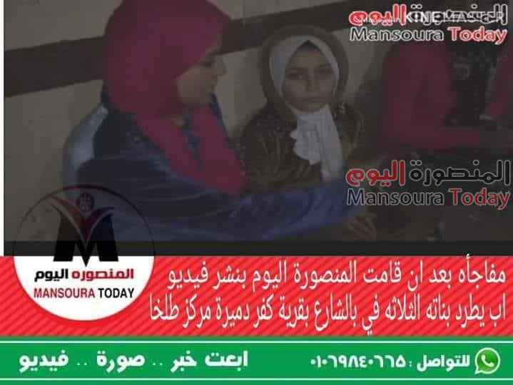 وظهر في مقطع الفيديو الذي حمل عنوان “أب يطرد بناته الثلاثة في الشارع ويسجن والدتهم بقرية دميرة في طلخا” ، وسط بكاء الثلاث فتيات واستغاثتهم أنهم يناموا في الشارع بلا مأوي أو أكل.