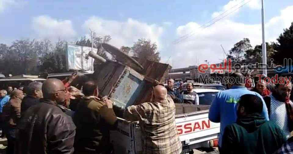 شنت إدارة شرطة المرافق، بمحافظة الدقهلية، اليوم الأحد، حملة مكبرة لإزالة الإشغالات والمرافق بشوارع مدينة المنصورة.