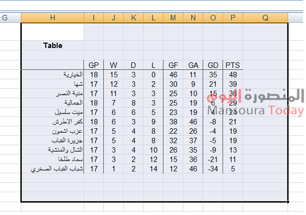 نتائج اندية الدقهلية بدوري القسم الرابع وترتيب الفرق