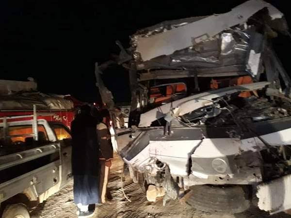 وعلى الفور، انتقل اللواء هانى سعيد مدير الإدارة واللواء عماد حمدى مدير قطاع الجنوب والمقدم حازم لاشين والرائد أحمد الشافعى والنقيب هوارى أحمد وتبين أن ساءق سيارة تريلا اصطدم ب14 سيارة مصطفة بسبب حظر التجول، كما تبين ان معظم الضحايا كانوا داخل سيارتين ميكروباص وجارى استخراج الجثث.