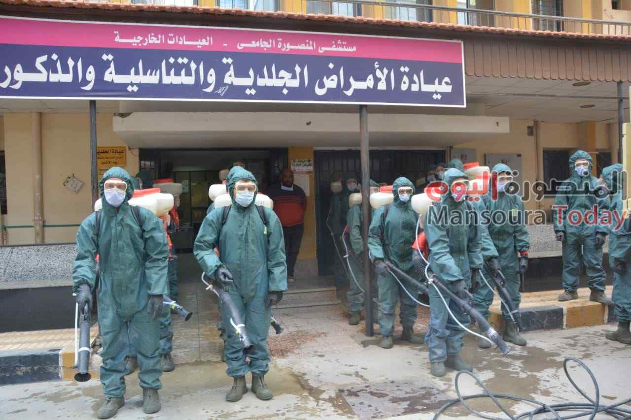 شهدت جامعة المنصورة قيام سلاح الحرب الكيميائية التابع لقيادة الجيش الثانى الميدانى بالقوات المسلحة بتطهير المستشفيات والمراكز الطبية، فى إطار حملة التطهير الاحترازية و الرش الشاملة التي تقوم بها الجامعة كإجراء احترازي ضد فيروس كورونا المستجد ،لضمان توفير سبل الحماية والسلامة لكافة أعضاء المجتمع الجامعي من الأطباء و اعضاء هيئة التدريس والاداريين و المرضى المترددين على المستشفيات الجامعية. تمت الحملة تحت إشراف الدكتور محمد حجازى المدير التنفيذى للمستشفيات والمراكز الطبية، العقيد تامر العوضى المستشار العسكرى لمحافظة الدقهلية وبحضور الدكتور الشعراوى كمال مدير مستشفى الجامعة الرئيسى، الدكتور سمير عطية مدير مستشفى الطوارىء، الدكتور محمد الشوبري مدير مركز الجهاز الهضمى، الدكتور وليد النحاس نائب مدير مركز الأورام، وقدم الدكتور أشرف عبد الباسط رئيس جامعة المنصورة التحية للقوات المسلحة المصرية على استعداداتها وجهودها المتميزة لمواجهة انتشار فيروس كورونا.