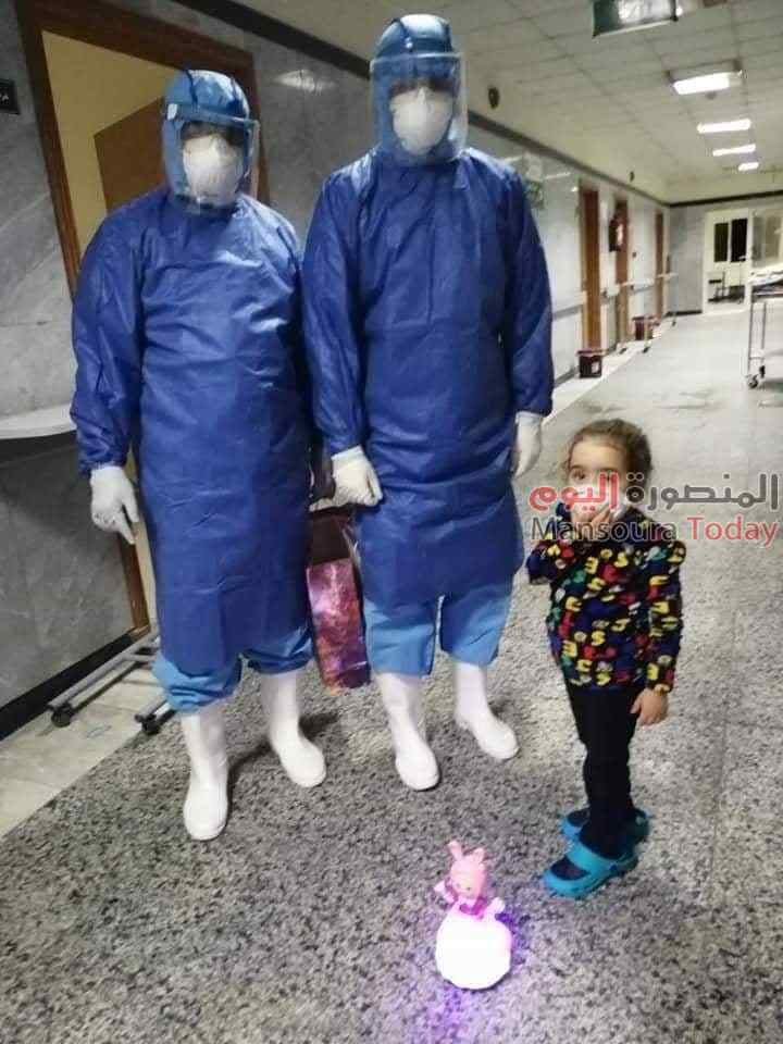 ويحرص العاملون بالمستشفي دائما على الاحتفال بالأطفال والمرضي الذين يتعافون من الفيرس عند خروجهم ب التقاط الصور التذكارية معهم، وتوزيع الورود واللعب للأطفال.