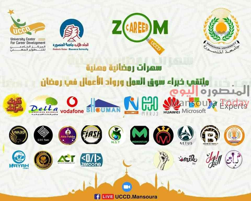 ينظم المركز الجامعي للتطوير المهني بجامعة المنصورة بالتعاون مع اتحاد الطلاب والأسر الطلابية بالجامعة سهرات مهنية اونلاين طوال شهر رمضان