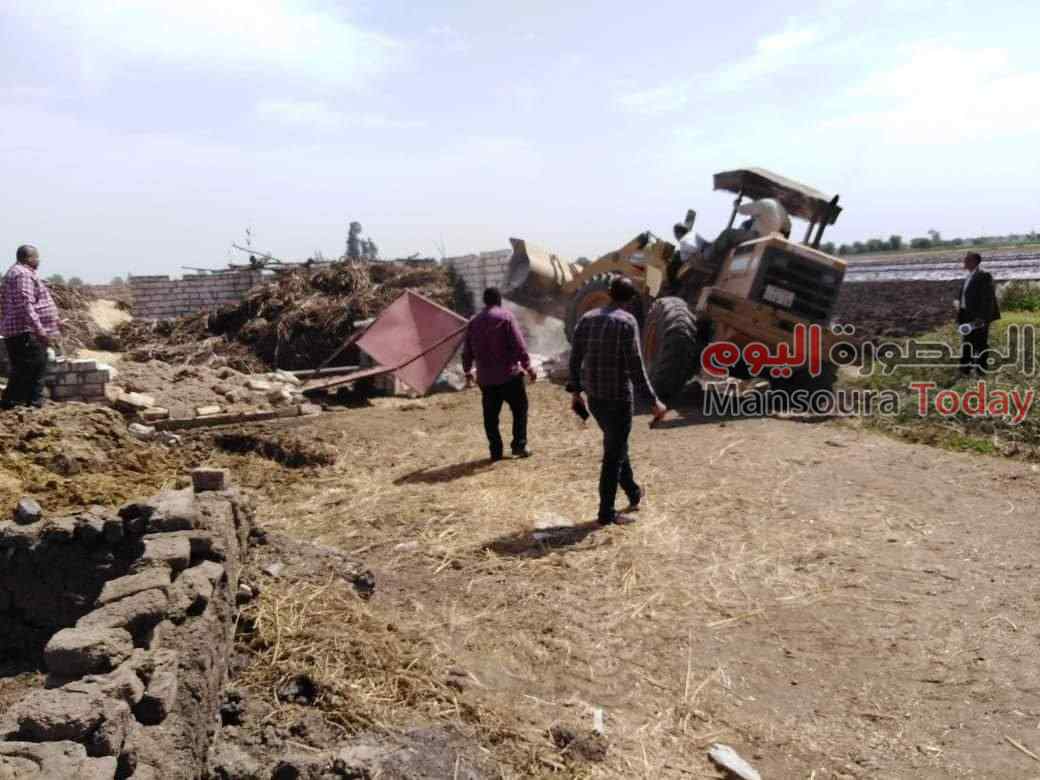 إزالة 15 حالة إزالة تعديات علي أراضي الدولة بالمطرية وميت غمر والمنصورة ونبروه