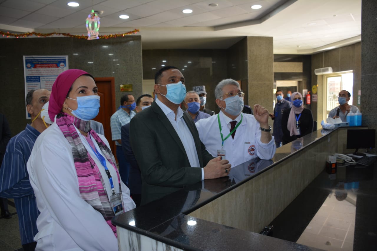 وتفقد محافظ الدقهلية العيادة الخارجية وبها 12 غرفة كشف والكافتيريا والصيدلية ويتم صرف 300 روشتة يوميا ،كما تفقد معمل التحاليل الطبية ويوجد به أكبر جهاز في العالم ويستوعب 200 عينة في نفس الوقت تشمل كافة عينات التحليل المختلفة.