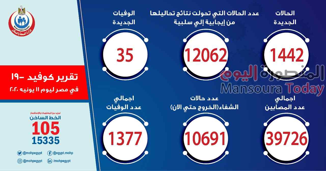 وذكر “مجاهد” أن إجمالي العدد الذي تم تسجيله في مصر بفيروس كورونا المستجد حتى اليوم الخميس، هو 39726 حالة من ضمنهم 10691 حالة تم شفاؤها وخرجت من مستشفيات العزل والحجر الصحي، و 1377 حالة وفاة.