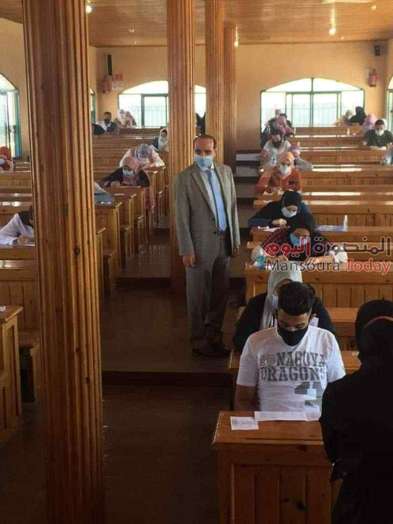 عميد خدمة اجتماعية بالمنصورة يتابع تطبيق الإجراءات الاحترازية فى أول يوم امتحانات