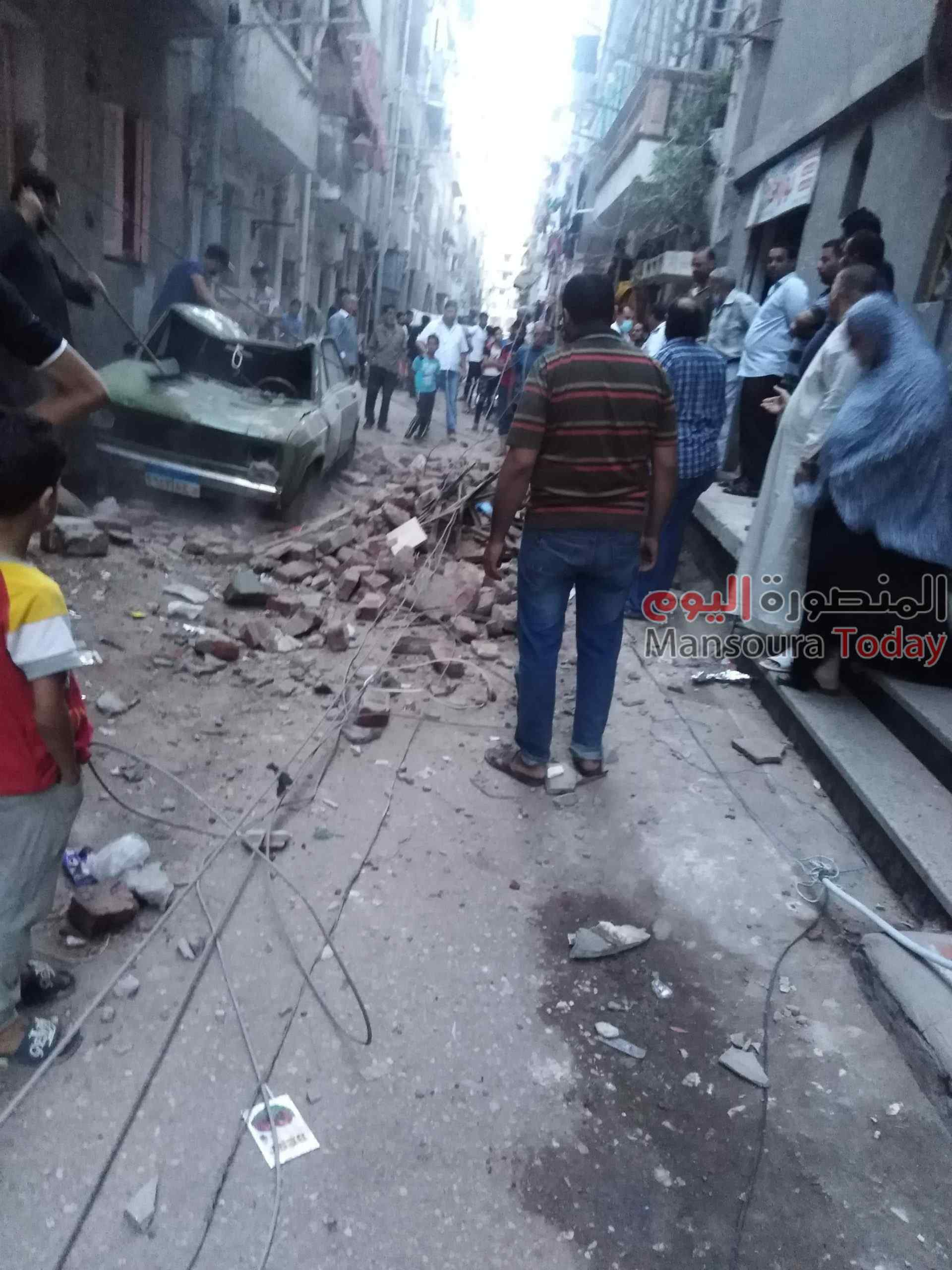 بالصور تحطم سيارة في انهيار بلكونة عقار بالمنصورة