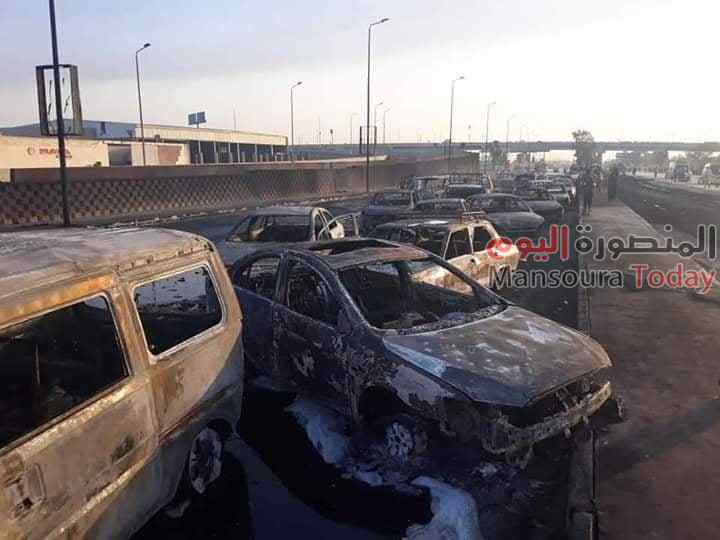 إصابة ١٢ شخص في حادث انقلاب سيارة مواد بترولية بطريق القاهرة الإسماعيلية الصحراوي